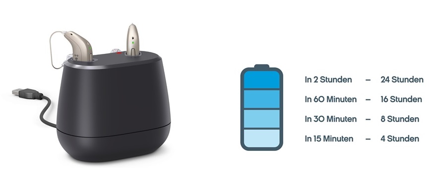 * Die Laufzeit des Akkus hängt von Ihrer Hörsystemnutzung ab.